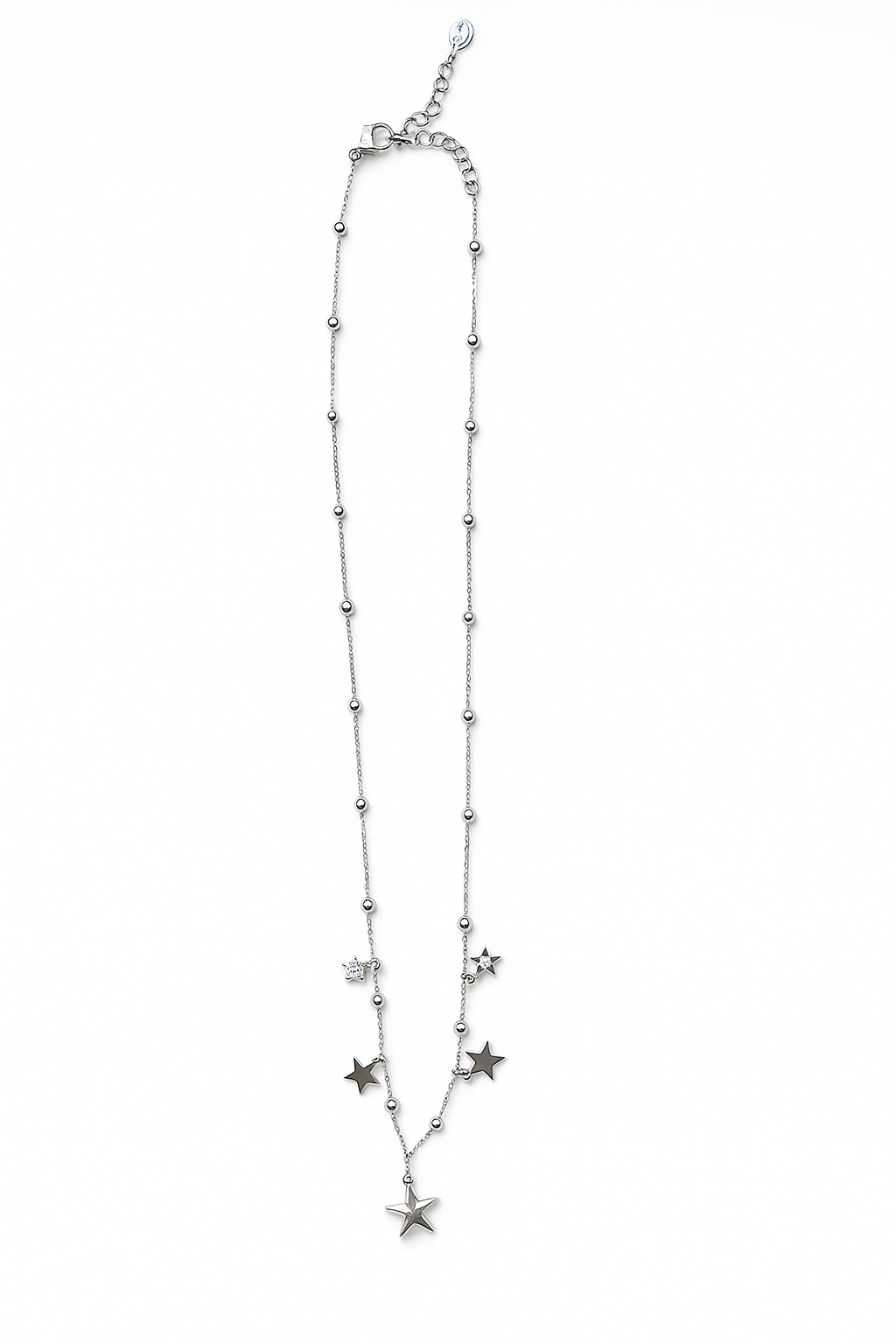 Deze ketting met kleine sterretjes hangers is een hele mooie subtiele ketting. De steentjes in de sterretjes laten de ketting extra mooi glinsteren. Perfect voor de feestdagen of gewoon om elke dag te dragen. De ketting is gemaakt van stainless steel, waardoor je er gewoon mee kunt douchen.